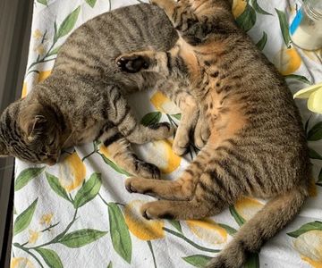 Sherpa, Spice, Harriet and Tenzing are 4 cats ready to teach your puppy all about what's okay and what isn't when it comes to living together in harmony with small animals. All 4 cats have grown up with dogs and are extremely dog savvy.